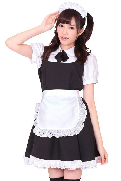 カチューシャやエプロン、スカートの裾にレースフリルを使用。