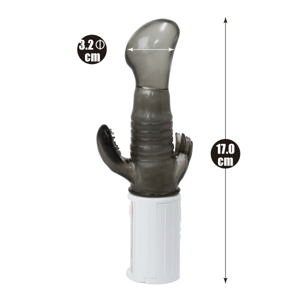 ヴァギナに挿入しやすく、膣内でジャストフィットするよう設計されたヒダ付きポール、繊細な振動で快感を与えるクリバイブ、アナル入口をコチョコチョ刺激するフラップで3点責めが可能です。