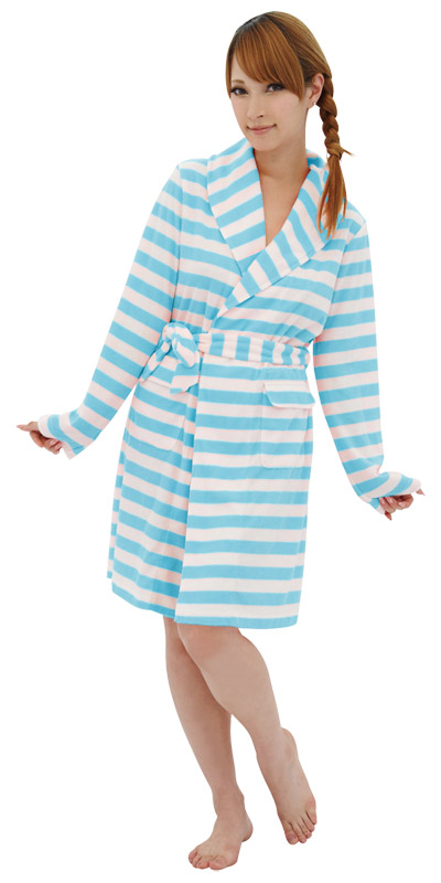 涼しげなアクアブルーのボーダー柄でキュートさをプラス!パッと着られるから、急な来客にも焦らず対応できちゃうよ!女子力UPに最適なアイテムです。