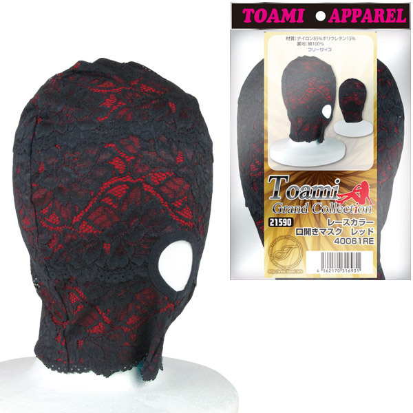 レースカラー口開きマスク レッド