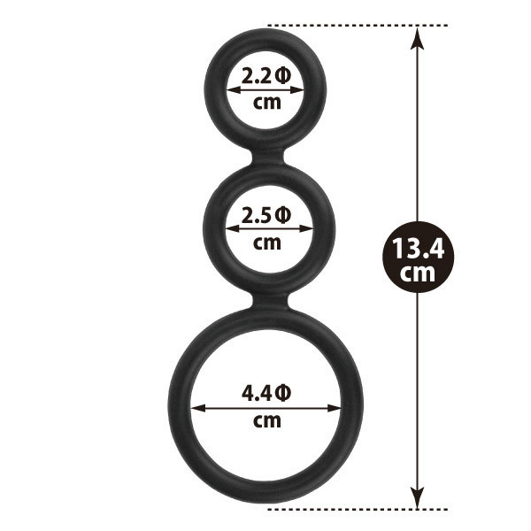 いつもよりギンギンになったペニスで長時間プレイ!玉袋の裏を通してペニスの根元から勃起をサポートできる、シンプルな3連コックリングです。