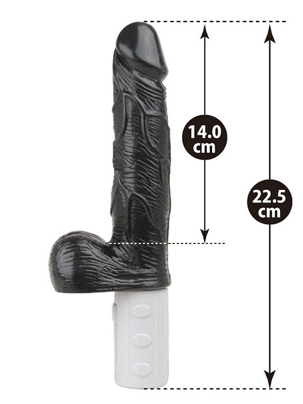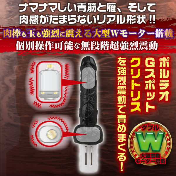 聳え立つ漆黒の肉棒&玉が強烈振動!大型のダブルモーターを搭載したバイブレーター。