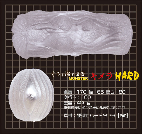 ●ぐちょ濡れ名器MONSTERキメラのハードタッチairバージョン●イボヒダ満載・ペニスを締めつけながら至高のギミックで責める●膣内の生態を感じる複雑な造形●裏返し簡単・耐久性が高くメンテナンスが楽●本気汁ローション(内容量50ml)つき。