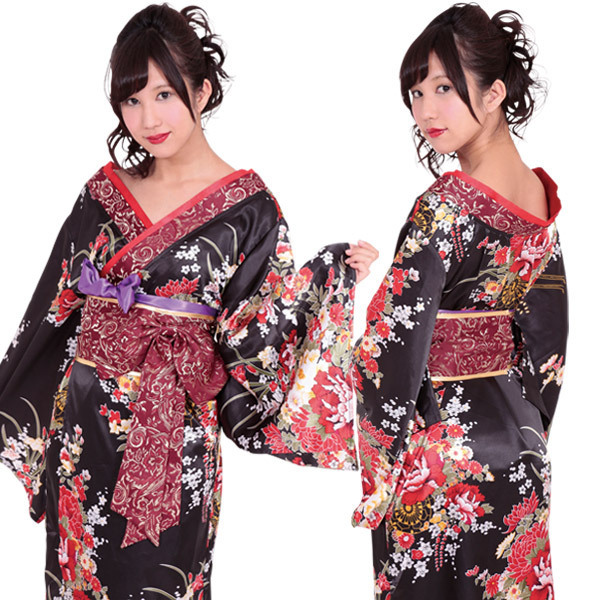 色っぽくも凛と着こなす和風スタイル♪豪華絢爛な花魁風のロング着物コスチューム。