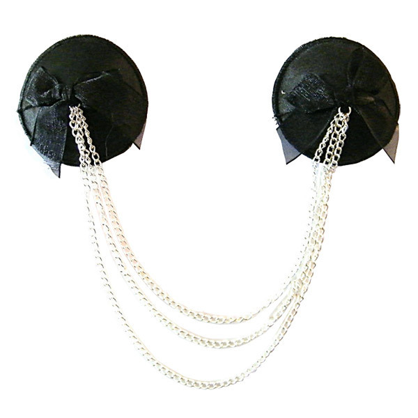ピタッと貼るだけの簡単仕様♪バストトップ(乳首)に貼るだけで、手軽にオシャレが楽しめる下着感覚のニップルジュエリー「ニップルカバー チェーンデコレーション 黒」。