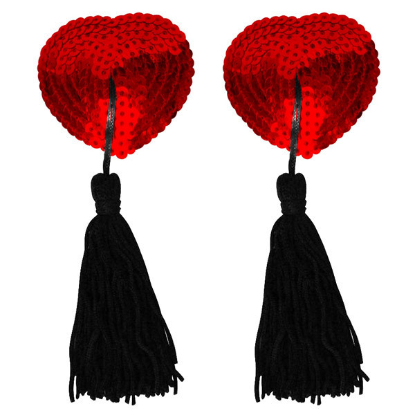 ピタッと貼るだけの簡単仕様♪バストトップ(乳首)に貼るだけで、手軽にオシャレが楽しめる下着感覚のニップルジュエリー「ニップルタッセル スパンコールハート 赤」。