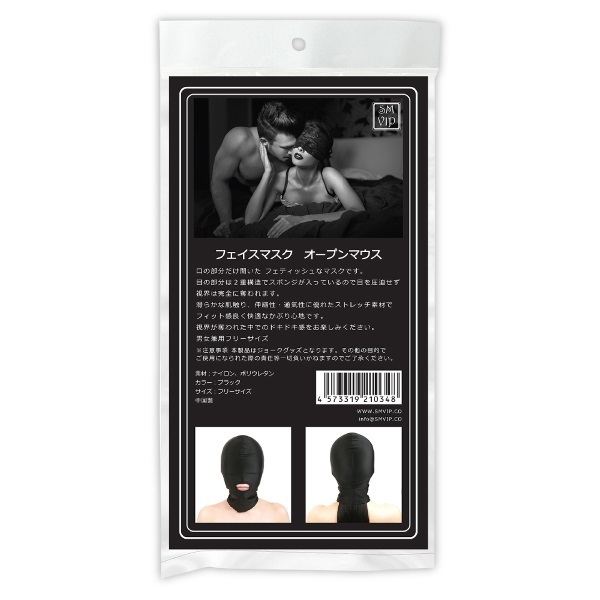 視界を遮り興奮度を高める「<SM VIP>フェイスマスク オープンマウス」の登場です!口の部分だけがオープンになった全頭タイプのフェイスマスクは、伸縮性や通気性に優れたストレッチ素材。