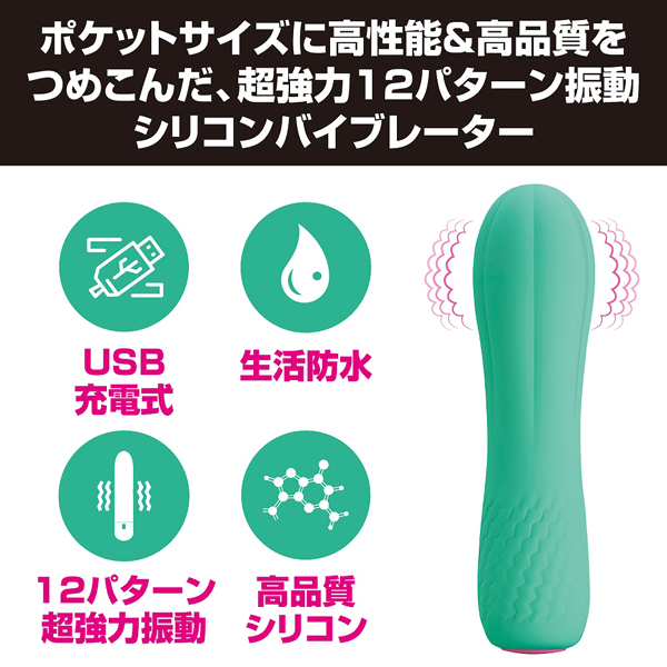 サボテンのような見た目が特徴的なコチラは全長11.6cm、太さ3.1cmの小型タイプながら、なんと12種もの振動パターンと一気に絶頂へと導く強力振動を搭載!出先でも気持ち良くなりたいなんて時には、鞄や車からサッと取り出して楽しめるのもこのコンパクトなシリコンバイブレーターの持ち味。