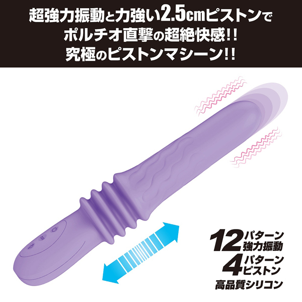 強烈振動と約2.5cmのピストンでポルチオを突きまくる!12パターン振動×4パターンのピストン運動を搭載したストレートバイブ。