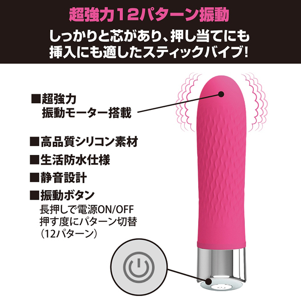 b26471)」等の吸引グッズでお馴染みのプリティラブより新登場!直当てや挿れるのに最適な、大きさ約12.5cmの小型ストレートバイブ。