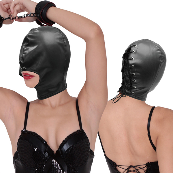 柔らかな質感のフェイクレザー製マウスオープンボンデージマスクインナーはフェルト加工で肌に優しい仕様。