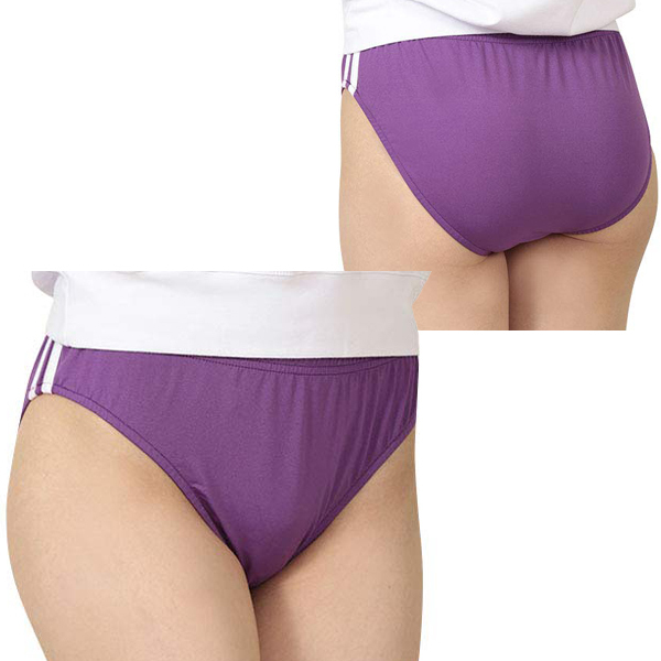 コスプレ単品シリーズに新色の紫が登場!両サイドに白ラインを2本施した本格派デザインで、伸縮性に優れ履き心地抜群!深めのハイレグカットが少し刺激的な萌え系コスプレです。