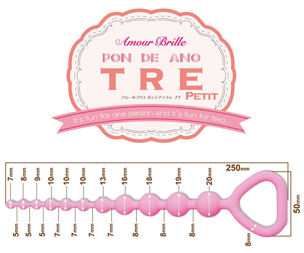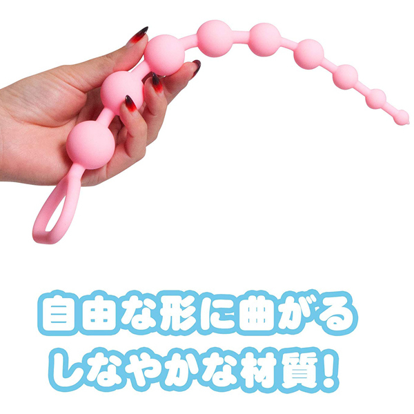 あの有名ドーナツに似た可愛い形状が特徴的!「ポンデ アノ」より肌に優しいシリコン素材を100%使用したアナル専用グッズ♪挿入しやすく初心者さんのお尻開発に最適な先端7mmの極小サイズから、最大径20mmまで9個のビーズが連なったポンデアノ。