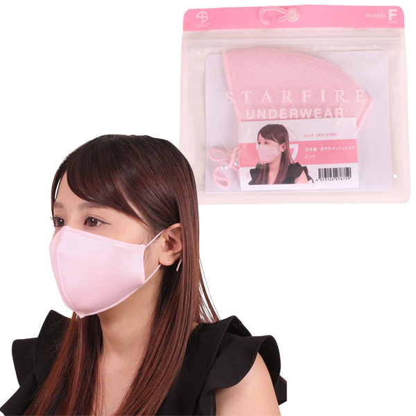 不織布フィルター1枚付属!三層構造で仕立てた消臭&抗菌仕様の可愛いピンクの日本製メッシュマスク。