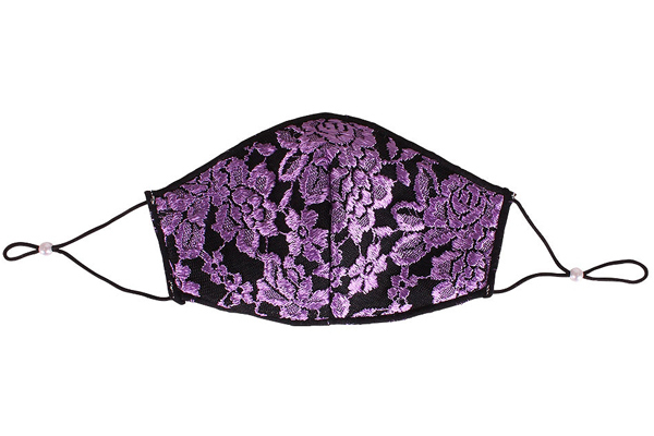 日々のマスクコーデに!紫の薔薇刺繍レースがお洒落な三層構造仕立ての大人用マスク。