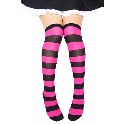 コスチュームのアクセントに!ピンク×ブラックのボーダーニーソ。