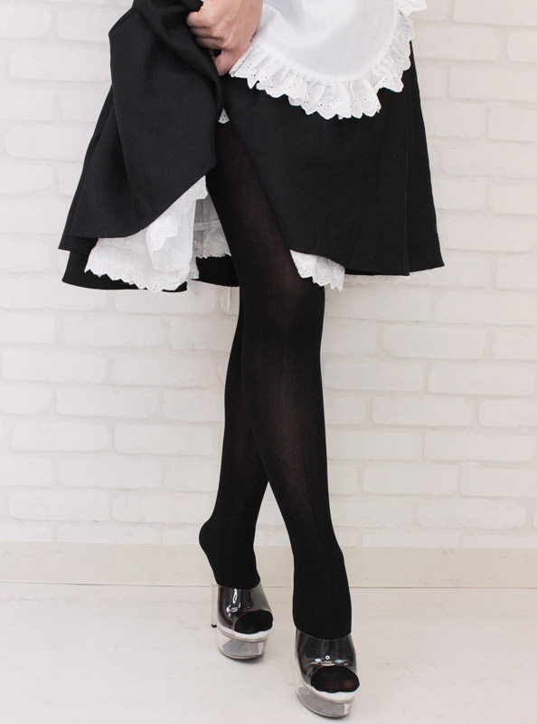 クラシックなメイド服やお嬢様系の制服コスチュームにピッタリ!肌が透けにくい80デニールの黒タイツ。