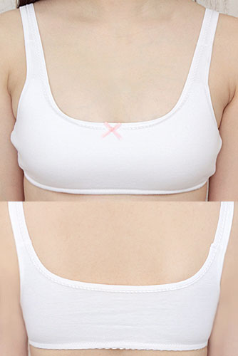 適度にクッション性のある、メッシュウレタン素材の裏打ち仕様で優しい着け心地!純白の綿パンツとあわせれば、ピュア度もさらにアップ!普段使いはもちろん、コスプレ衣装のお供にも最適なスポブラです。