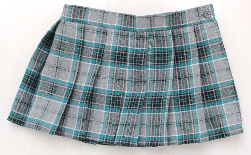 ニーハイとのコラボで絶対領域を美しく確保!エメラルドグリーン×グレーのバランスが可愛いマイクロミニのチェックスカート(M)。