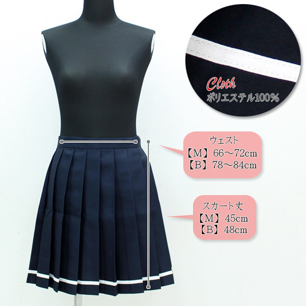 HOME > コスプレ衣装 > 小道具(ニーソックス・猫耳) > 無地プリーツスカート単品 紺×白ライン M