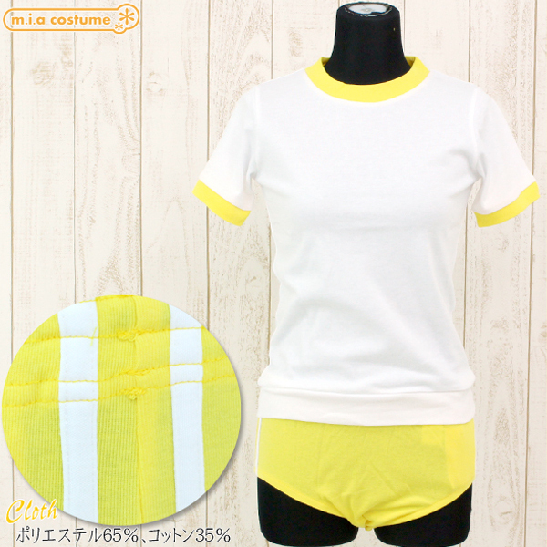 穿き心地の良いウエストゴムで仕立てたイエローのブルマに、トップスを合わせたシンプルな体操服コスプレです。