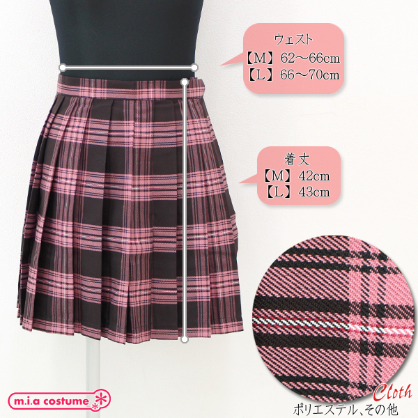 HOME > コスプレ衣装 > 小道具(ニーソックス・猫耳) > ポケット付きのチェック柄プリーツスカート単品 ピンク×ブラウン Lサイズ