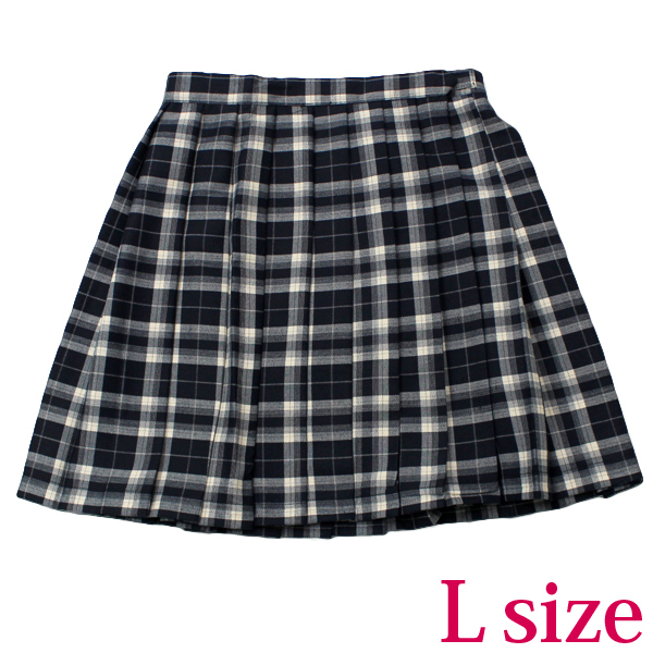 ポケット付きのチェック柄プリーツスカート単品 濃紺×クリーム Lサイズ