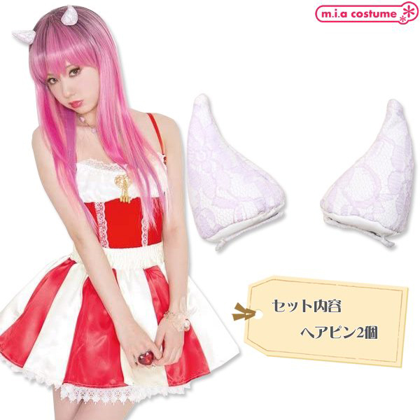 スウィートでファンタジックな世界観が素敵!原宿系カリスマモデル「AMO」のプロデュースブランド「Lunatic Lemony Lollipop」からレーシィデビルホーン(ヘヴンホワイト)が登場♪エナメルの上にはラベンダーカラーのレースが重ねられていて、甘めなデビルホーンのヘアピンがとても良い感じです。