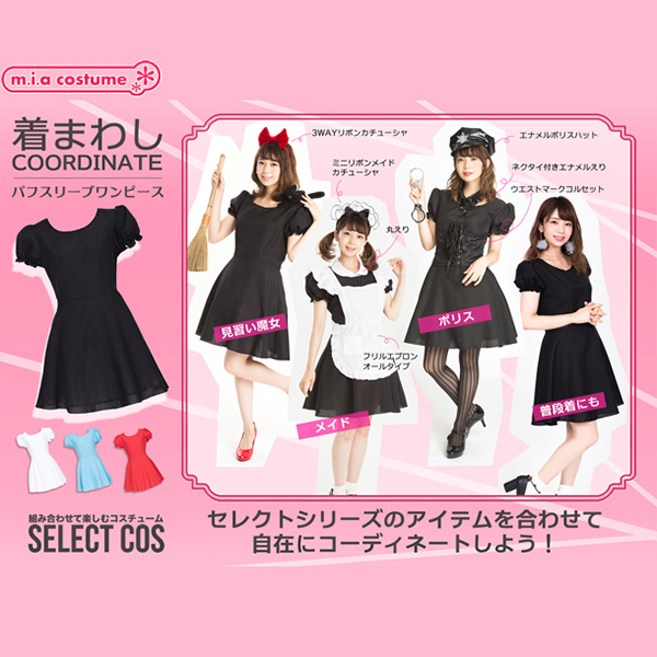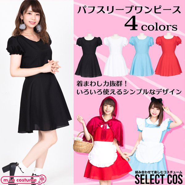 HOME > コスプレ衣装 > 小道具(ニーソックス・猫耳) > セレクトコス パフスリーブワンピース ブラック