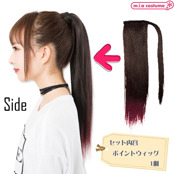 二つ使えばツインテールにもアレンジ可能!地毛に馴染みやすいサラサラの毛質だから違和感なくお使いいただけます♪発色の良いブラック×ワインレッドのカラーリングはライブなどのイベントにもおススメ。