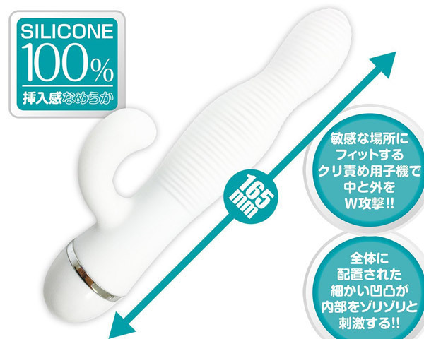 ●清潔感溢れる全身真っ白ボディ●シルキータッチの純シリコン製●緩やかな波型×微細な凹凸入り●くびれ部分は自在に曲げられる●Gスポットを的確にヒット可能●クリトリスを直撃のカーブ子機●7種類の振動パターンを装備。