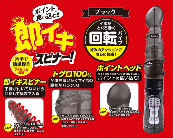 簡単、回転、大絶頂!内部を掻き乱すパワフル回転バイブ「即イキスピナー! ブラック」。