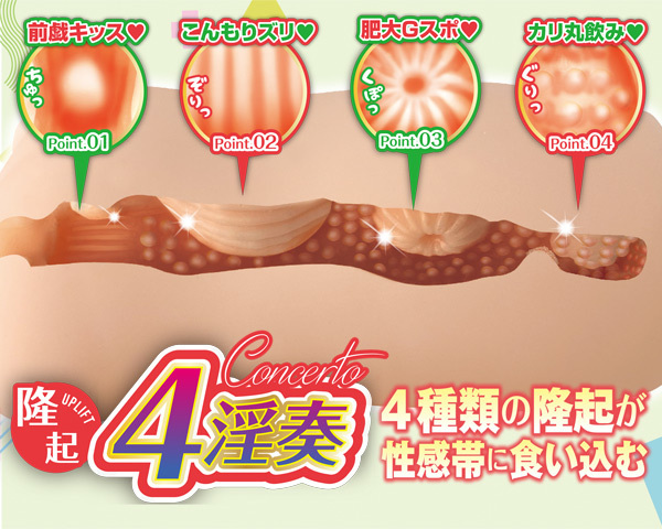 経験人数は4人、恋もエッチも楽しめるお年頃「朝比奈カホ」は、4種類のギミックで貴男を誘惑!吸い付いたり擦ったり、性感帯に食い込む4つの隆起が奏でる4淫奏が快感を高めていく♪全長は12.6cm、横幅6.8cmのコンパクトサイズ。