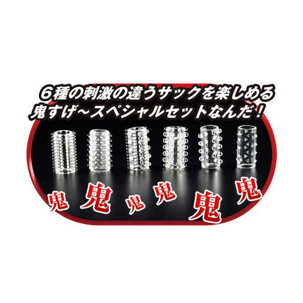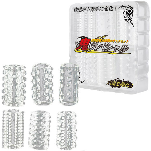 今夜はどれがいい?パートナーと一緒に選んで使って楽しめる、種類豊富なペニスサック「鬼スペシャル」6点セット。