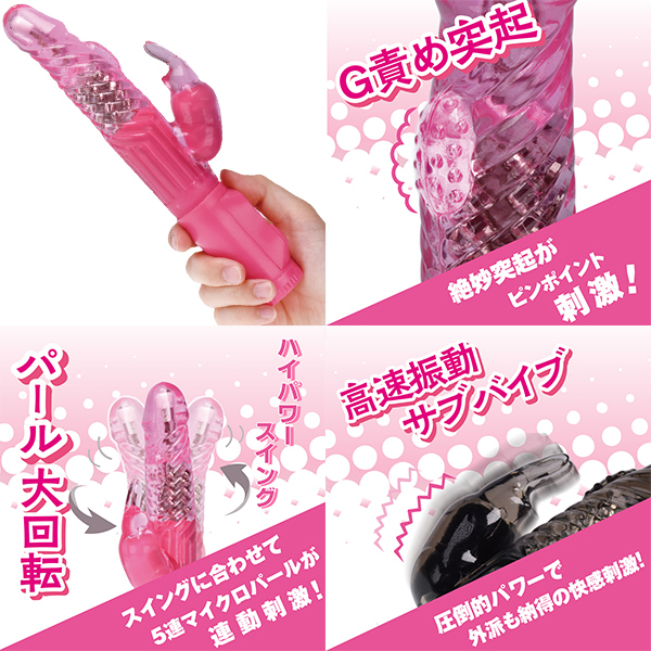 最大径30mmのジャストフィット形状に挿入部から約50mmの部分に絶妙に配置されたGス●ットしげき突起を配置・グルグル刺激するパール回転アクションも搭載。