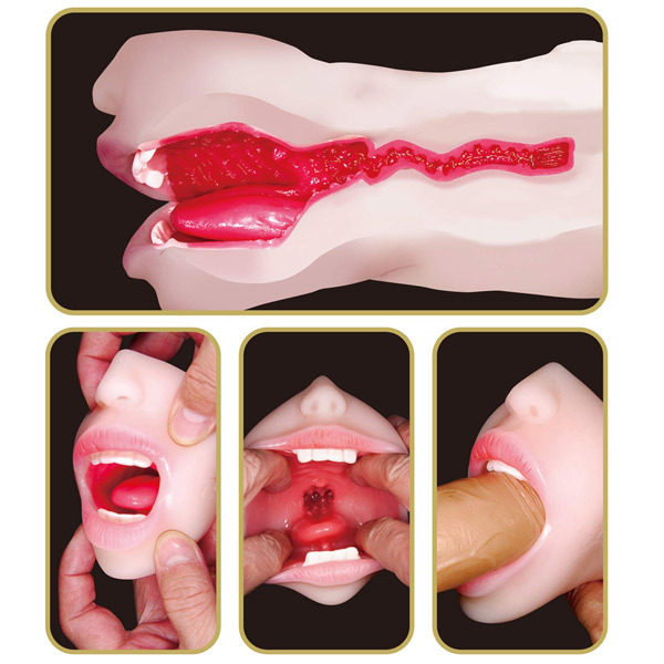 ペニスを咥えている様を見ているだけでも興奮度高まるのに、硬口蓋や白い歯のコリッと触感、喉のザラつく内部など、あらゆるギミックで貴男のペニスを最高のフェラテクで責め立てる!小さな口へ無理矢理ペニスを捻じ込むだけでも、その光景に思わず腰の動きも早まります♪貴男を絶頂へ導くたかしょーの口技、しかとその身体で体感あれ!