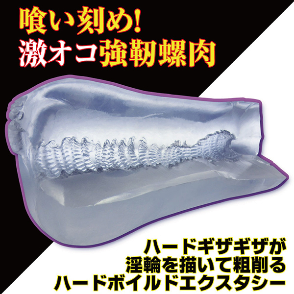 螺旋状に配置されたハードギザギザが淫輪を描いて粗削るハードボイルドなエクスタシー!甘いゾリ感じゃ納得できない方向けの攻撃的なギミックが、カリを徹底的に責めたて快感へと誘います♪一般的なゾリ感のオナホに飽きたならぜひどうぞ!ただの螺旋とは雲泥の差があるHARD刺激で飛びイキ必至です♪