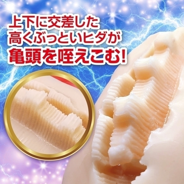 超極太の山ヒダが上下連続で交差する!山ヒダオナホ「クロッシングバレイ」が登場です!ヒダ山脈のように高くぶっといヒダが亀頭に直撃する!しかも超細かいヒダがそれぞれの山に搭載されており、ゾリゾリ感を味わいながらも隙間なく積み上げられた上下に交差する山ヒダで、亀頭が完全に咥え込まれる!ガッチャンコだ!350gの肉厚で内部の隙間がほどんどない程の重厚感!ボコッボコッっとなりながらも亀頭が舐めまわされるような快感!これはかつてない造形だ!快感だ!この奇跡の造形の前では我慢などできまい!山に任せて心行くまでピストン運動!そして即暴発!