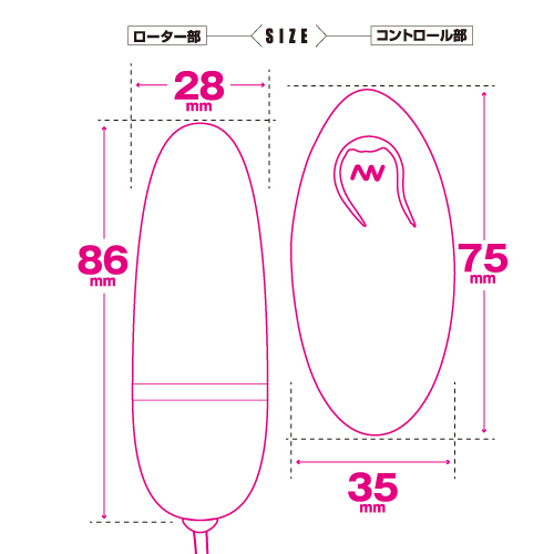 ローター部は全長86mmで最大径28mm、製品素材はシリコーン・ABSを使用しているので使用感は滑らか♪電源は単四電池1本で使い勝手も抜群!これを使って誰でもすぐイカせるテクニックを手に入れよう♪