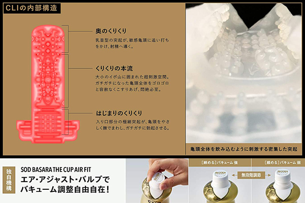新機構エアアジャストバルブを搭載!「SOD BASARA」シリーズ最新作の簡易オナホ「CLI(クリ)」。