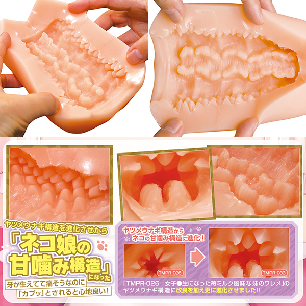 内部構造は派手目のギミックで、上部には猫の歯をモチーフにした山型の突起群をびっしりと配置!底部には小さな舌のような突起を2列配置し、上下でそれぞれ異なる刺激がお楽しみ頂けます♪●メーカー型番:TMPR-033