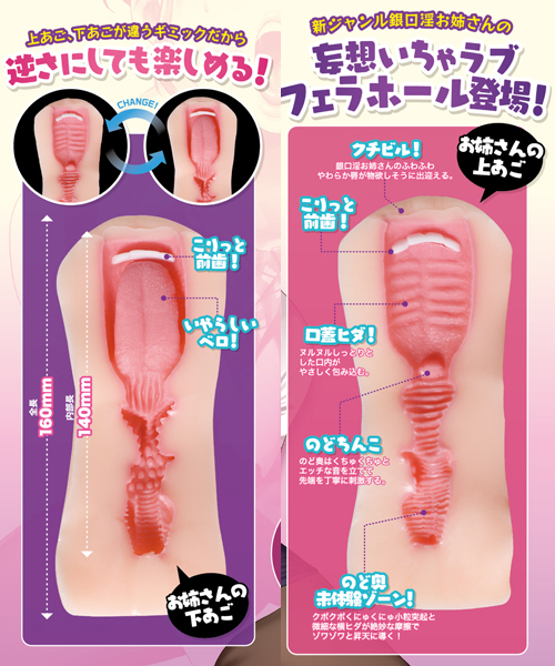 人気同人作家ヨッコラ氏による作家認定商品!こちらの銀口淫お姉さんはフェラホ好きにはたまらない前歯付きの非貫通オナホとなっています。
