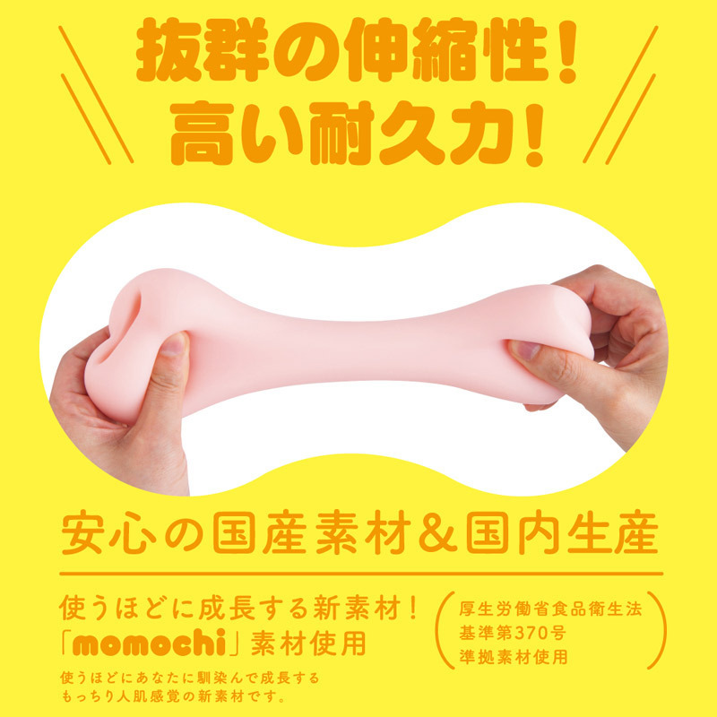 ●使えば使うほど覚醒・もっちりシリコン「momochi」●ほんのりピンク色・耐久性も高い●肉厚でリアルな挿入感●がっしり握れて容易に膣圧調節可能●内部は楕円突起にイボやヒダを造形●連続リングやスパイラルでも刺激●G PROJECT×ペペのコラボローション(5ml)●保管に便利なチャック付き収納袋も付属。