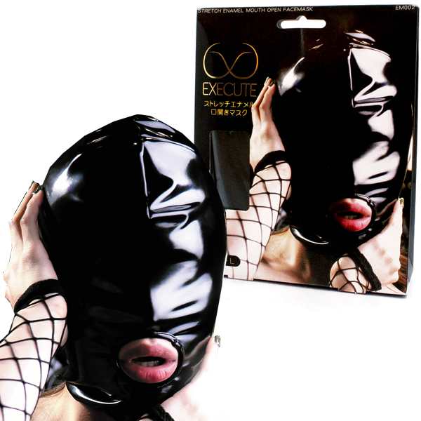 日本国内の工場で縫製され、厚手のストレッチエナメル生地を使用した口開きタイプのフェイスマスク。