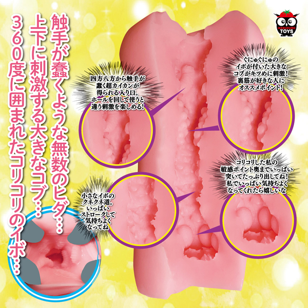 四方八方から迫りくる触手や裏スジ刺激のコブゾーン、360度配置されたコリコリ触感のイボ達が非日常的な快感を与える!ボディには程よい弾力でもち肌の日本製エラストマー素材を採用♪嫌なニオイも軽減した350gの肉厚オナホです。