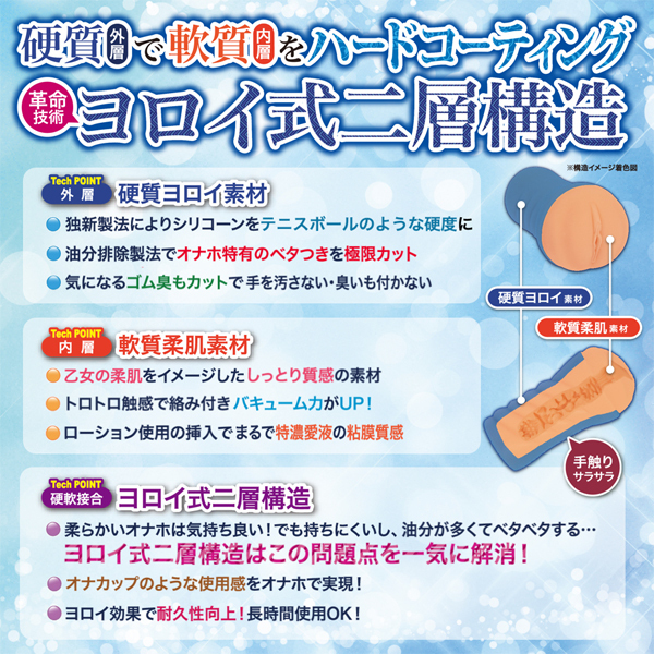 」とお嘆きのあなたに、ヨロイ×乙女の柔肌!硬質素材(外層)で軟質素材(内層)をハードコーティング!鎧乙女オトメイルは硬軟素材が接合した革命技術「ヨロイ式二層構造」の非貫通オナホールです。