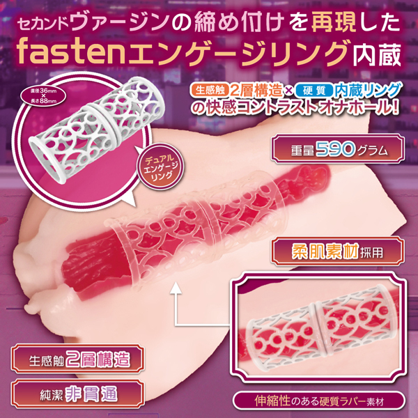 びらびらラビアがいやらしい成熟フォルムボディ!ヴァギナ、モノクローズはセカンドヴァージンの締め付けを再現する「fastenエンゲージリング」をデュアルで内蔵した非貫通オナホールです。