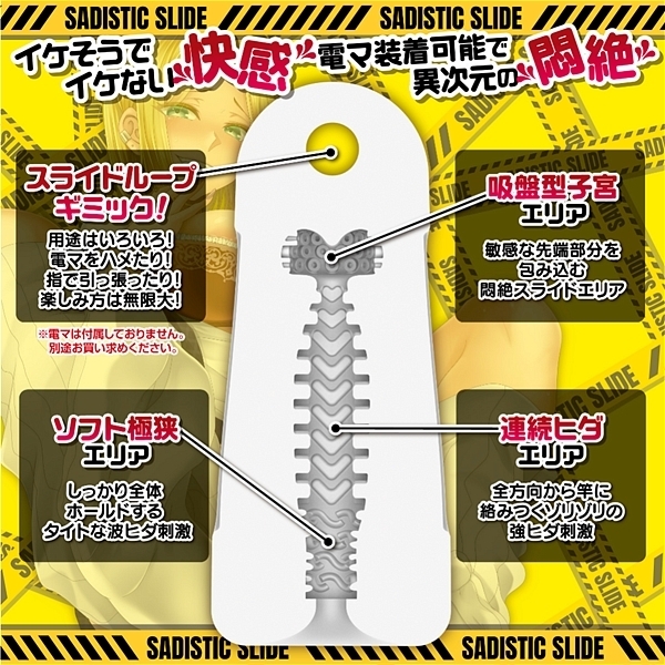 先端を刺激するギミックホール「サディスラD」は伸ばして楽しむスライドオナニーが楽しめるオナホールです。