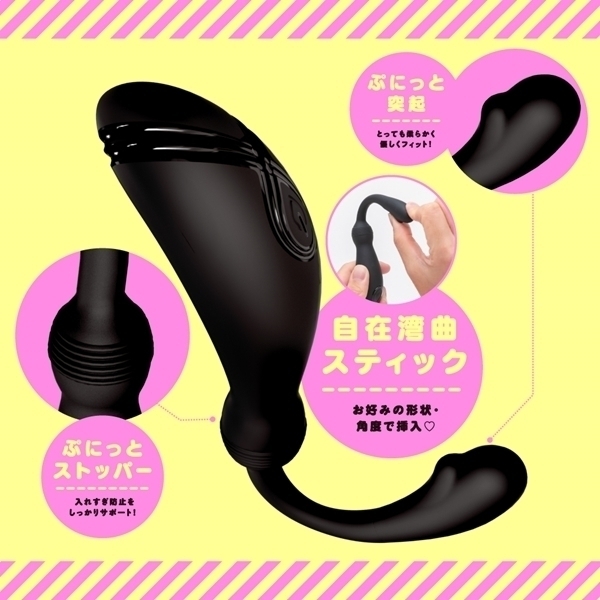 超細型スティックで優しく挿入&ピンポイントで即イキ!!PPPより超初心者にオススメなアナニーバイブが登場!高品質ソフトシリコン&ツルンと簡単挿入フォルムの超細型スティックで安心して挿入ができる!!先端のぷにっと突起はとっても柔らかく優しくフィット!自在湾曲スティックでお好みの形状・角度で挿入♪ぷにっとストッパーが入れすぎ防止をしっかりサポート! セルフプレイも簡単で超玄人の即イキにも便利っ!●女の子みたいにイケるメス堕ちイキ仕様の優秀バイブ!本体は充電式なのでエコに使用可能。
