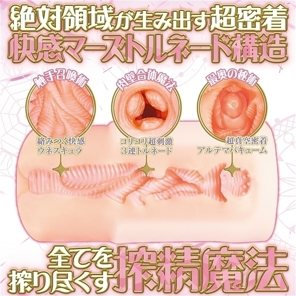 ニーソックスのような「アウター2層構造」の絶対領域は完璧な柔硬バランスにより生まれる「アルテマバキューム」で快感を逃さない「超密着」を実現しました!そんな「見習い魔女のマーズ」の内部はトルネード構造になっており、挿入感もマーヴェラス。